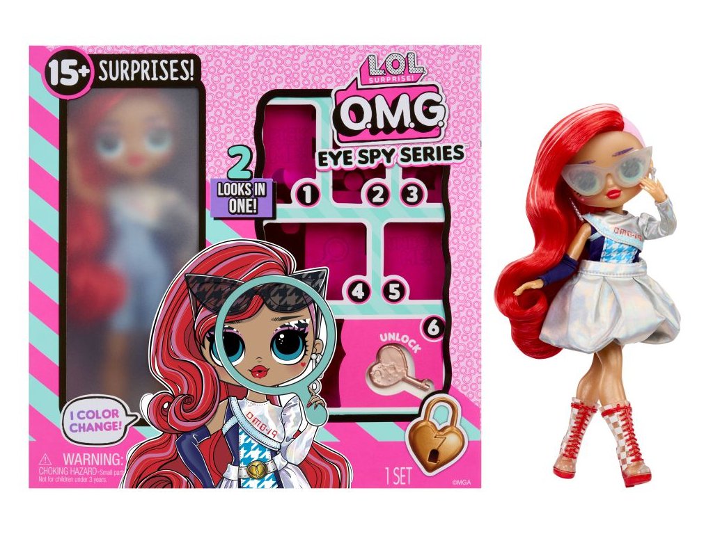 L.O.L. Surprise! ti přináší ten nejúžasnější a nejinteraktivnější zážitek z rozbalování vůbec! Vstup do světa překvapení, kde budeš muset luštit kódy, řešit hádanky a krok za krokem odemykat tajemství, abys odhalila roztomilé oblečky, doplňky a mnoho dalšího! Čeká tě 15 překvapení! Každá nápověda tě přiblíží ke klíči, který odhalí to největší překvapení - OMG Velkou ségru! Ponoř ji do ledové vody a objev její novou identitu. Obsah balení:? • 1 OMG Velká ségra Spy • 1 outfit, 1 pár bot, 1 pár náušnic, 1 – 5 doplňků • 1 kartáč na vlasy, 1 stojánek na panenku Velikost L.O.L. panenky: cca 23 cm.Doplňkové parametry