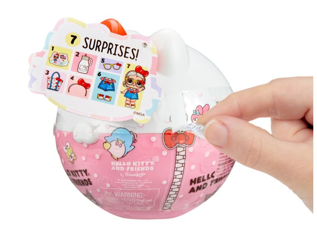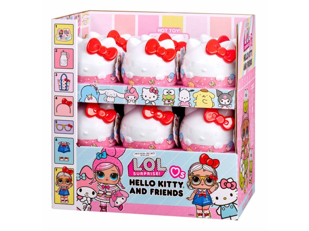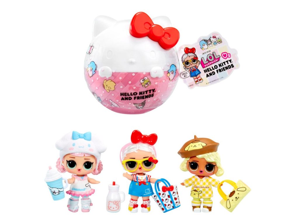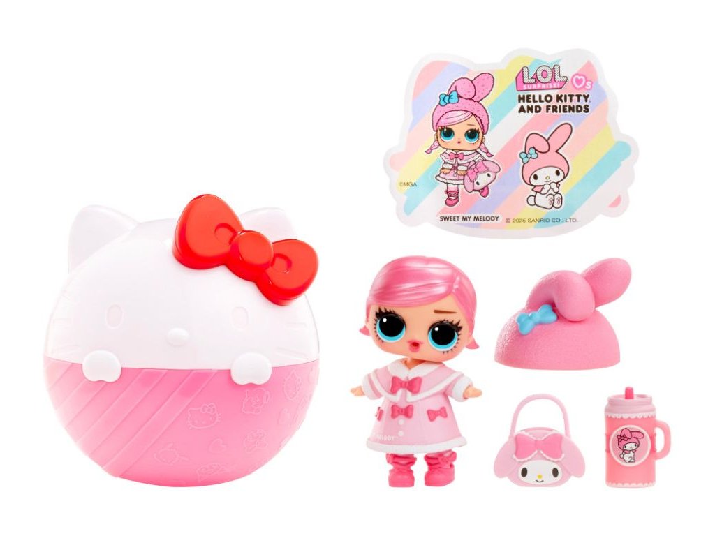 L.O.L.Surprise! se spojilo s ikonickou Hello Kitty. V obalu ve tvaru kočičky s červenou mašlí najdeš jednu panenku inspirovanou Hello Kitty nebo jejími přáteli, a to My Melody, Kuromi, Pompompurin, Cinnamoroll, Tuxedo Sam, Keroppi a Pochacco. Obsah balení:? • 1 panenka • módní doplňky inspirované ikonickými postavičkam V této sérii můžeš sesbírat 8 postaviček.Doplňkové parametry