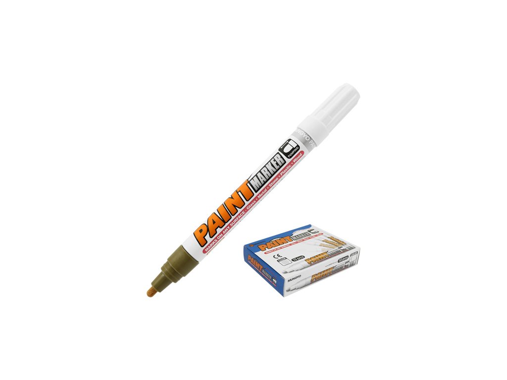 Lakový popisovač s tenkým psacím hrotem v kovové objímce a hliníkovým tělem. Plněný permanentním inkoustem se slabým zápachem, bez obsahu toluenu a xylenu. Vynikající krycí schopnost na způsob laku. Používá se na silně krycí značení kovu, skla, plast.Doplňkové parametry