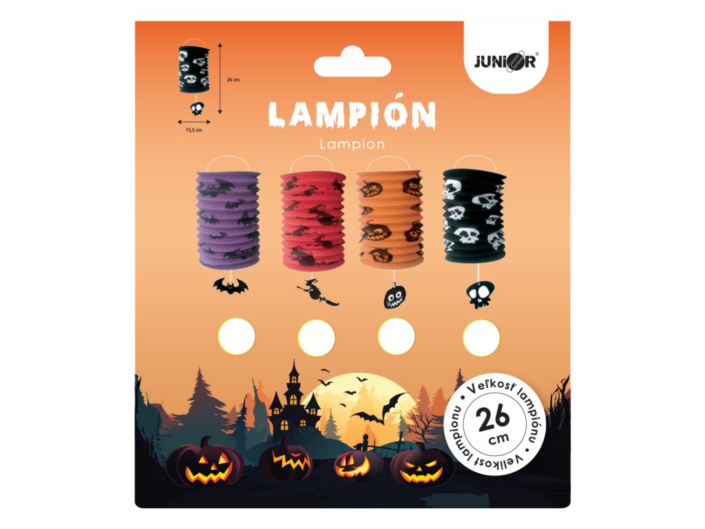 Lampion válcový 26 cm Halloween (mix 4 barev/designů, cena za 1 ks)