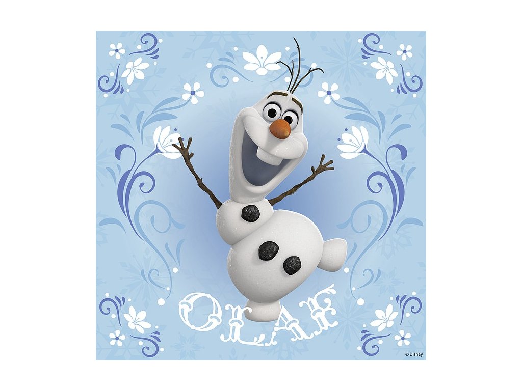 Puzzle s obrázkem Ledového království obsahující 3 x 49 dílků. Velikost složeného obrázku je 18 x 18 cm.Doplňkové parametry