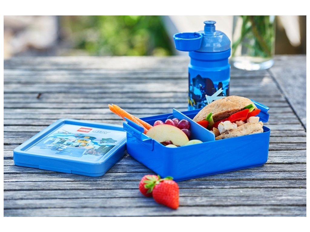 Do školy s novým svačinovým setem! Svačinový box a láhev na pití s motivem LEGO City. Rozměry láhve: průměr 65 mm, výška 170 mm, objem 390 ml. Rozměry boxu s víkem: 170 x 135 x 69 mm. Materiál neobsahuje bisfenol A (BPA) ani ftaláty. Bez použití PVC. Doporučený věk 5+Doplňkové parametry