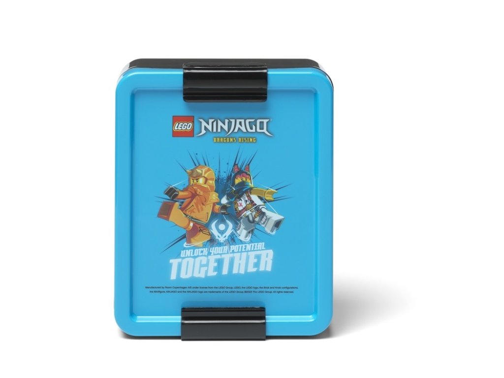 Do školy s novým svačinovým setem! Svačinový box a láhev na pití s motivem LEGO Ninjago. Rozměry láhve: průměr 65 mm, výška 170 mm, objem 390 ml. Rozměry boxu s víkem: 170 x 135 x 69 mm. Materiál neobsahuje bisfenol A (BPA) ani ftaláty. Bez použití PVC. Doporučený věk 5+Doplňkové parametry