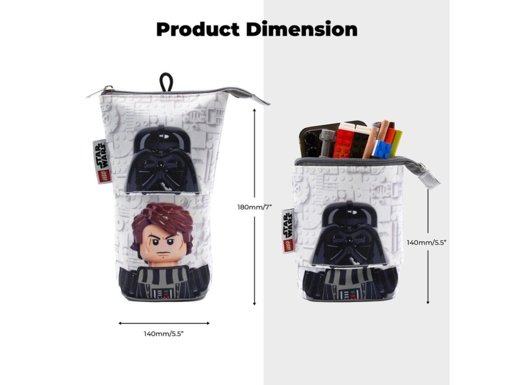 Představujeme LEGO pouzdro na tužky Pop Up, které je dostupné v různých oblíbených tematických motivech, jako jsou Star Wars, Ninjago, Batman, Harry Potter a další! Toto všestranné pouzdro je ideální pro všechny školáky a fanoušky LEGO, kteří chtějí mít své oblíbené hrdiny vždy po ruce.Vlastnosti produktu: