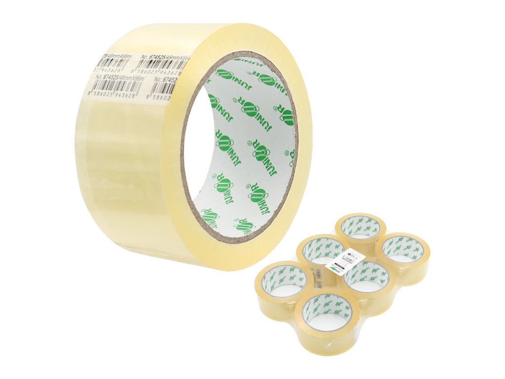 Nízkohlučná lepící páska, návin 66 m, šířka 48mm. Použitelná do běžných odvíječů. Tloušťka 50 mic.Doplňkové parametry