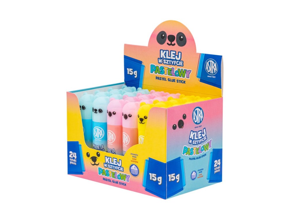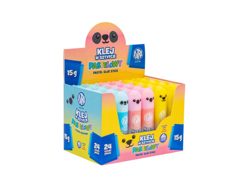 Lepicí tyčinka Astra Medvídek Pastel je praktické a bezpečné lepidlo na papír, karton, fotografie a běžné školní materiály. Díky pastelkové barvě obalu a milému designu medvídka si ji děti okamžitě oblíbí. Lepidlo je netoxické, snadno se aplikuje a po zaschnutí nezanechává skvrny.