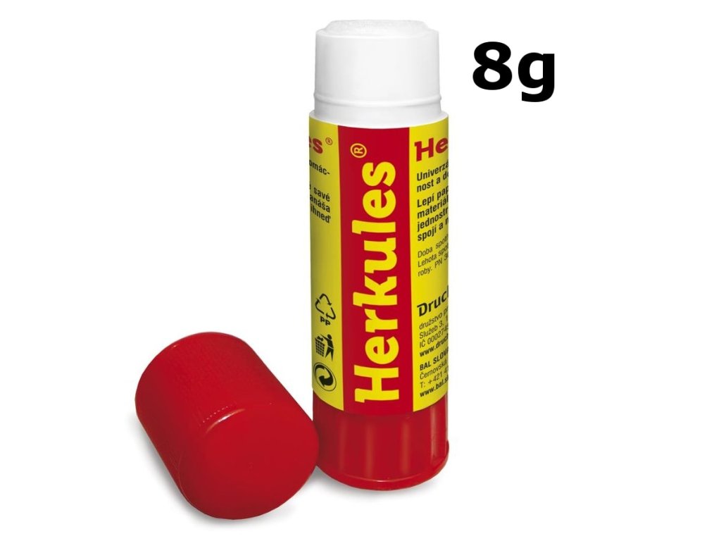 Univerzální lepící tyčinka vhodná je zejména pro děti, do školy, do hodin ručních prací nebo k vytváření jednoduchých papírových prezentací. Tyčinka pracuje na principu výsuvné lepící části, kterou se žádoucí oblast určená k lepšení jednoduše potře. Před vysycháním je pak tyčinka Herkules chráněna nasazovacím uzávěrem. Tyčinka je vhodná k lepení papíru, tkanin, korku a dalších savých materiálů.Doplňkové parametry