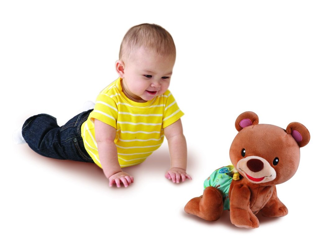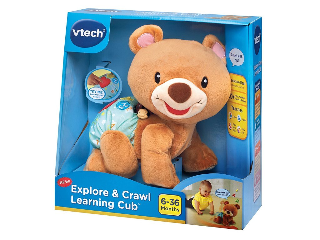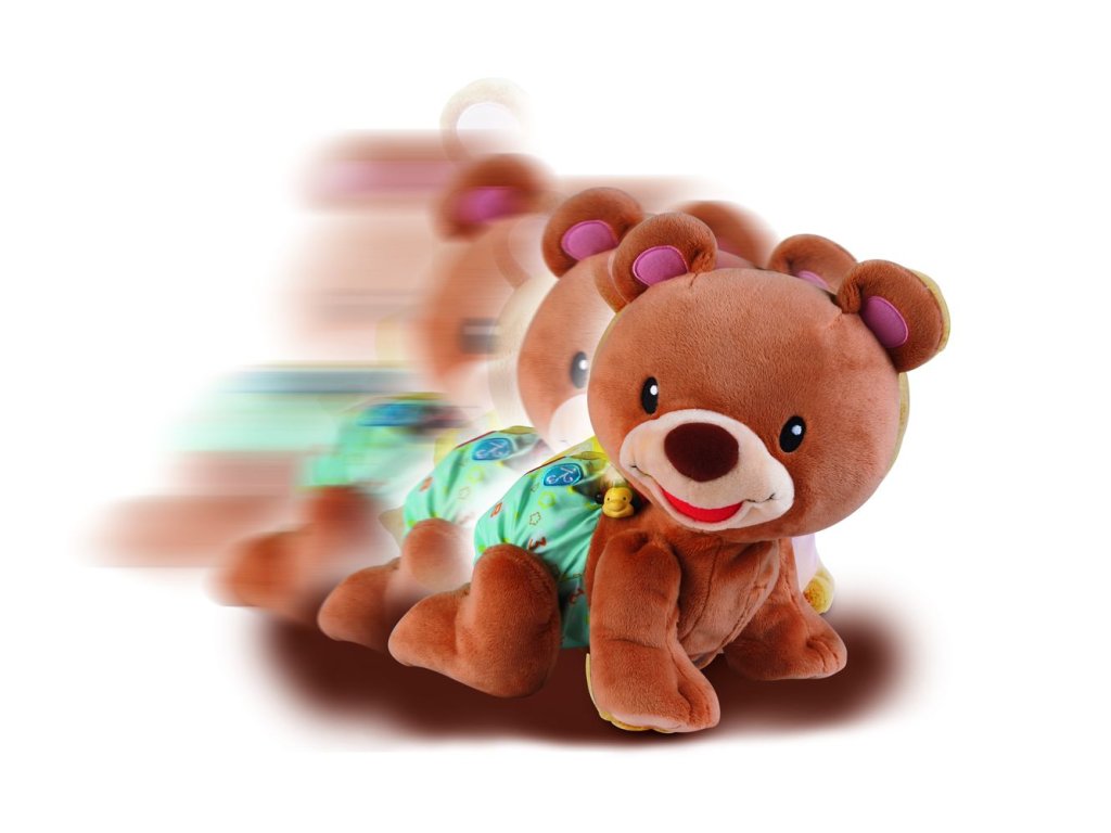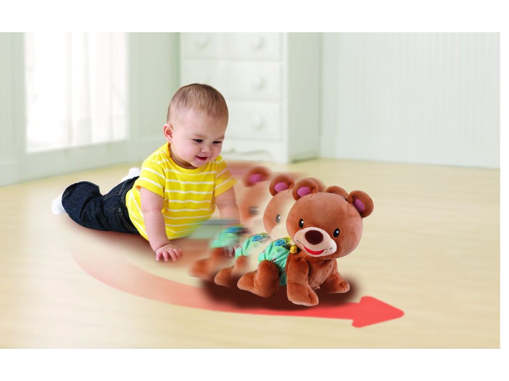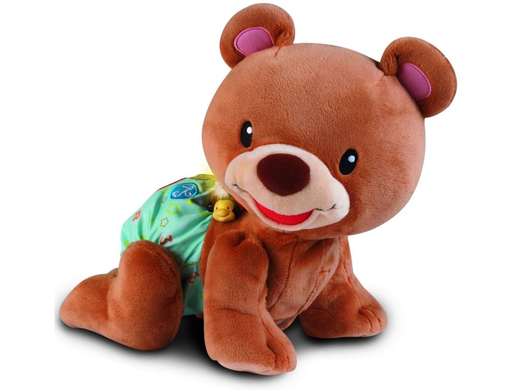 Rozkošný zvídavý medvídek povzbuzuje batolata i menší děti k pohybu a hře na podlaze. Po stisknutí srdíčka na zádech plyšáka, říká medvídek roztomilá slova a fráze a přitom pomalu leze. Medvídek učí poznávat barvy, tvary a hraje písničky. Zazpívá 5 písniček a zná přes 50 slov a frází. Medvídek je veselý kamarád, který svým pohybem i roztomilostí přitahuje pozornost dítěte, a zároveň ho blikajícími světly vyzývá k interakci. Pro děti od 9 měsíců. Hračka při zakoupení využívá 3AA demo baterie, které jsou určené pouze k předvedení výrobku a jsou součástí balení. Pro správnou funkčnost výrobku je nutné baterie vyměnit za nové.Doplňkové parametry