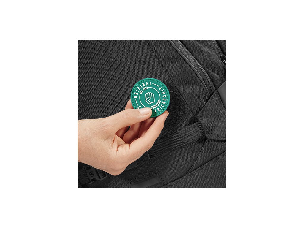 - placku připevněte na suchý zip na batohu a přívěsek upevněte na poutko