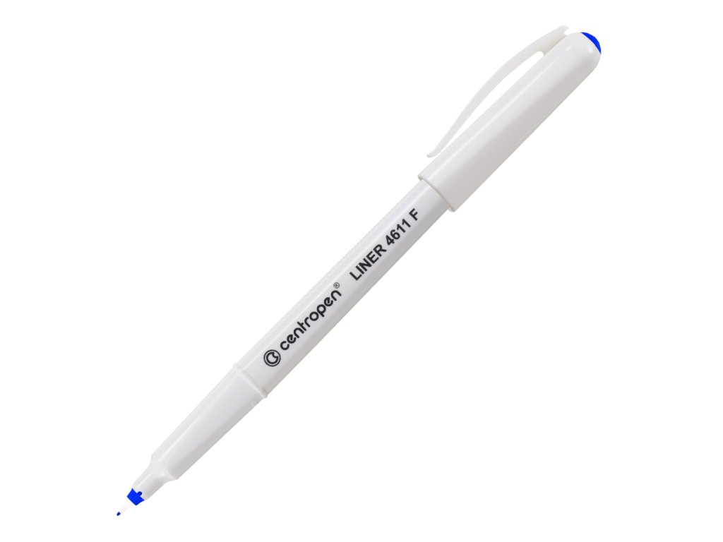 Liner CENTROPEN 4611 je osazen jemným plastickým hrotem. Má široké využití, určený je na psaní, podepisování, jemné kreslení a skicování. Šíře stopy 0,3 mm, délka stopy 1500 m. Barva: modrá.Doplňkové parametry