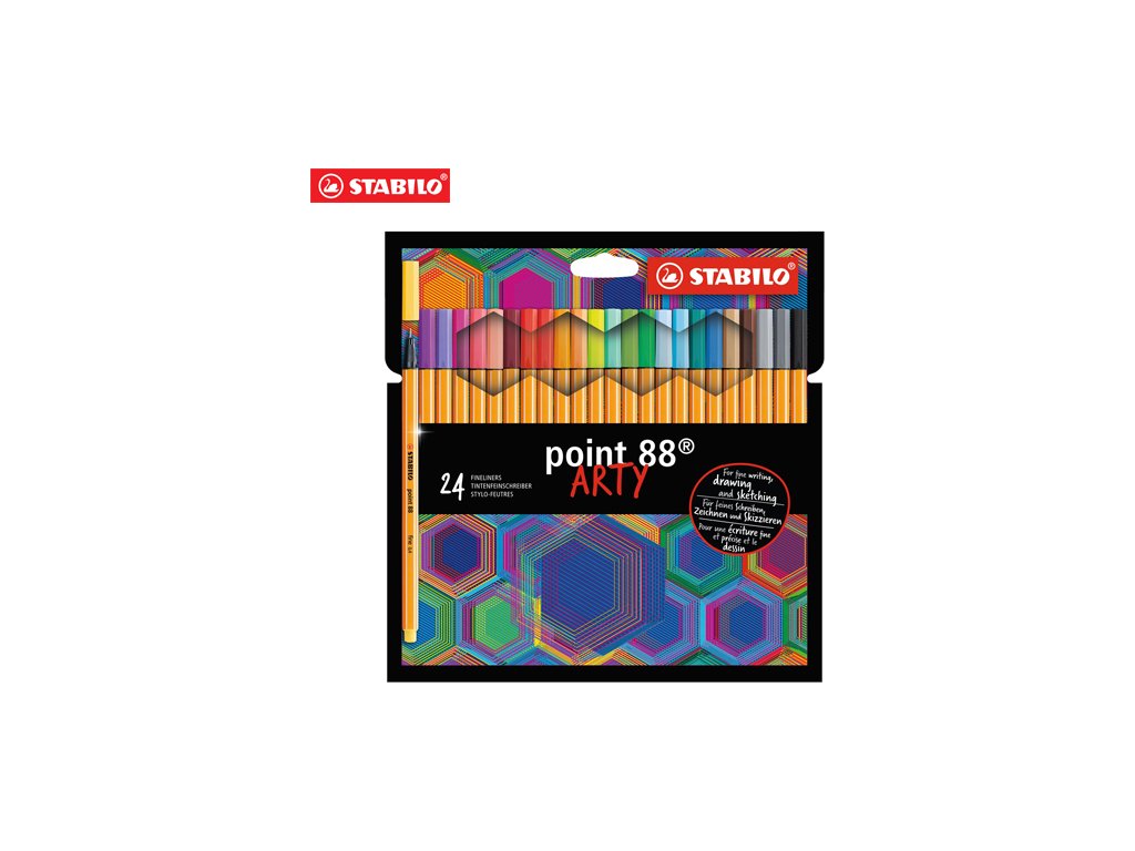 Nejstylovější liner vůbec. 24-kusová sada STABILO point 88 arty, mix základní a neonové barvy. Stopa šířky 0.4 mm ti poskytne kontrolu a přesnost. Odolný hrot zaručí dlouhé psaní. Při kreslení můžeš vytvořit ty nejjemnější detaily, při psaní můžeš psát opravdu malé písmenka. Perfektní pro práci s pravítkem, rýsování, přesnou práci a na barevné strukturování textu a poznámek, zkrátka všestranný pro každou situaci.Doplňkové parametry
