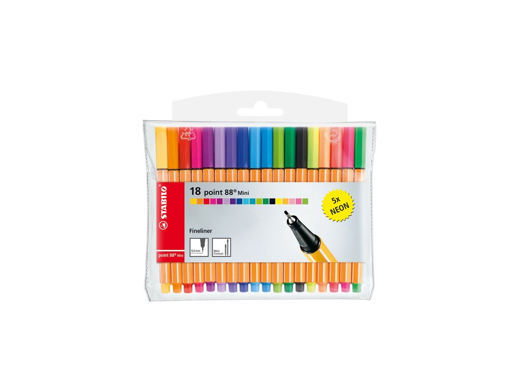 Miniliner s jemným vláknovým hrotem. Sada obsahuje 18 odstínů, z toho 5 neonových barev. Poslouží pro rychlé barevné poznámky. Tenký inkoustový liner. Vydrží dlouho bez víčka a nevyschne. Hrot zasazen v kovovém pouzdře zajišťuje dlouhou životnost. Šíře stopy 0,4 mm. Balení obsahuje 18 ks.Doplňkové parametry