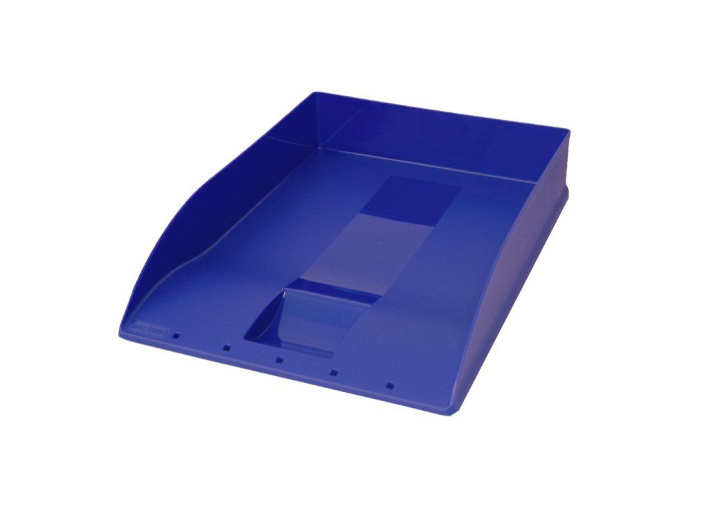 Stohovatelný plastový odkladač dokumentů formátu A4.