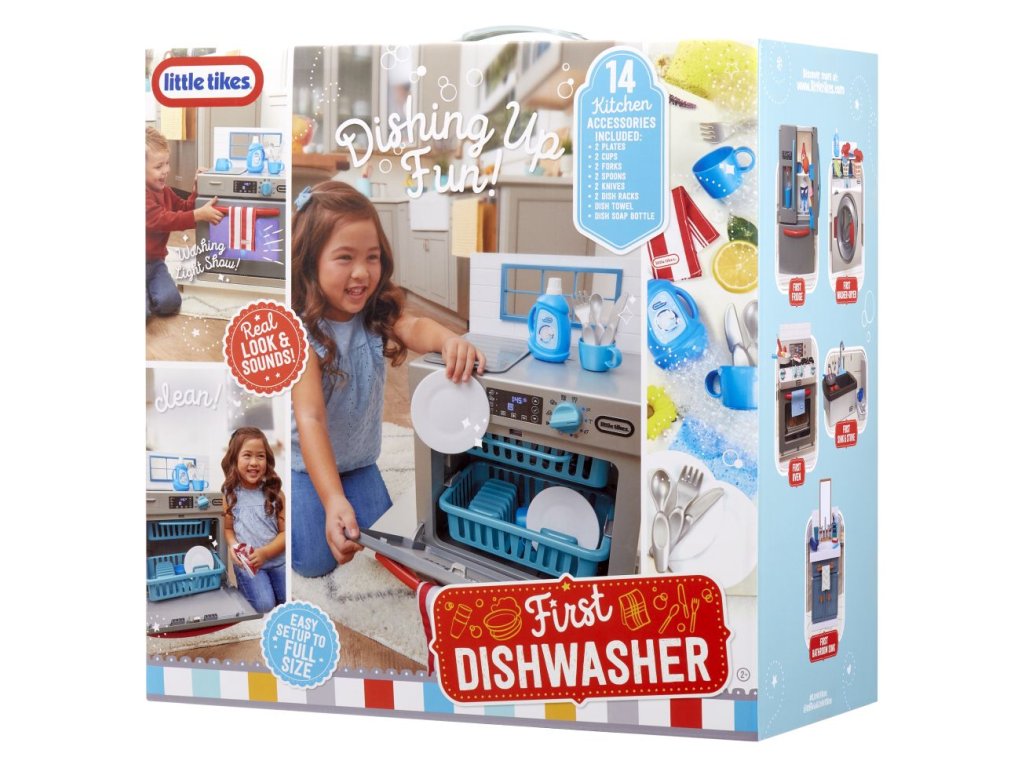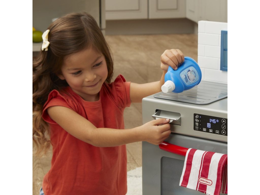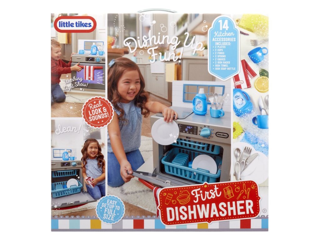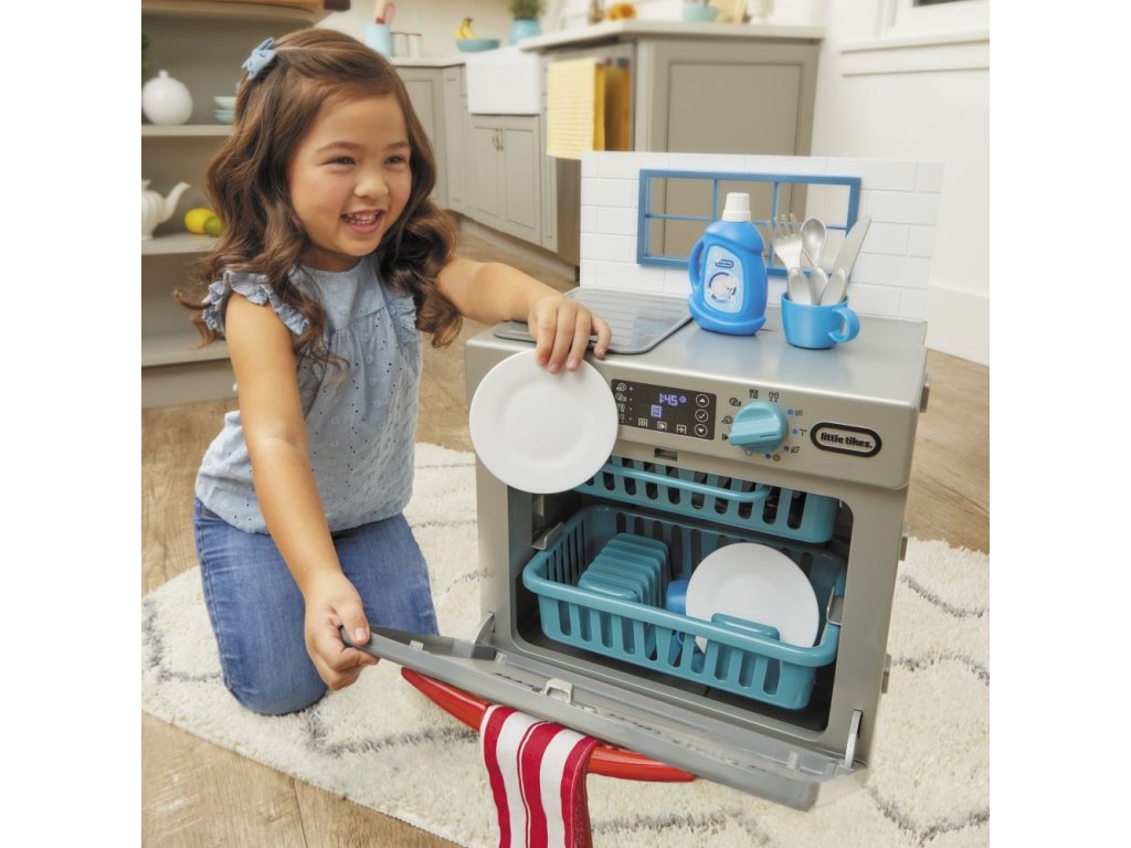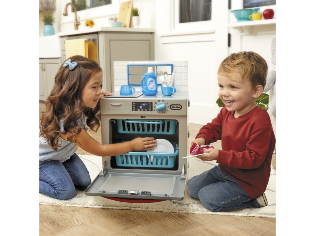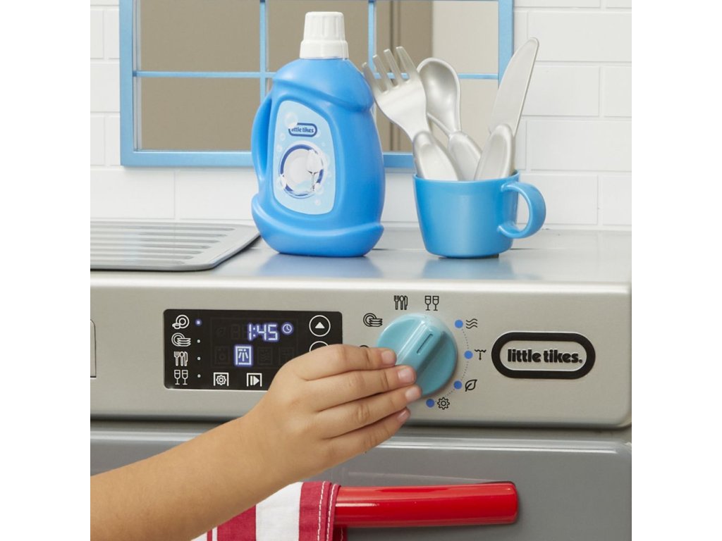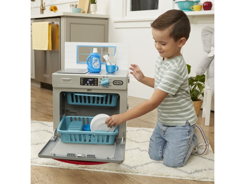 Little Tikes Moje první myčka je interaktivní hračka, která je navržena tak realisticky, že vypadá jako skutečná myčka. Děti mohou předstírat, že myjí v kuchyni stejně jako jejich rodiče. Další informace a funkce: Realistická tlačítka, světla a zvuky Vysunovací koš na nádobí Průhledná přední dvířka, která umožnují sledovat proces mytí nádobí Knoflík při otáčení cvaká Funkční zásobník na mycí prostředek Utěrka na nádobíDoplňkové parametry