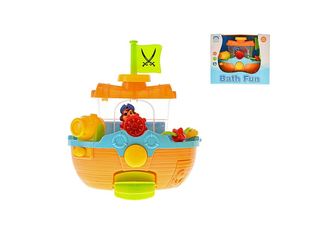 Loďka do vany 22cm stříkací s přísavkami a doplňky v krabičce