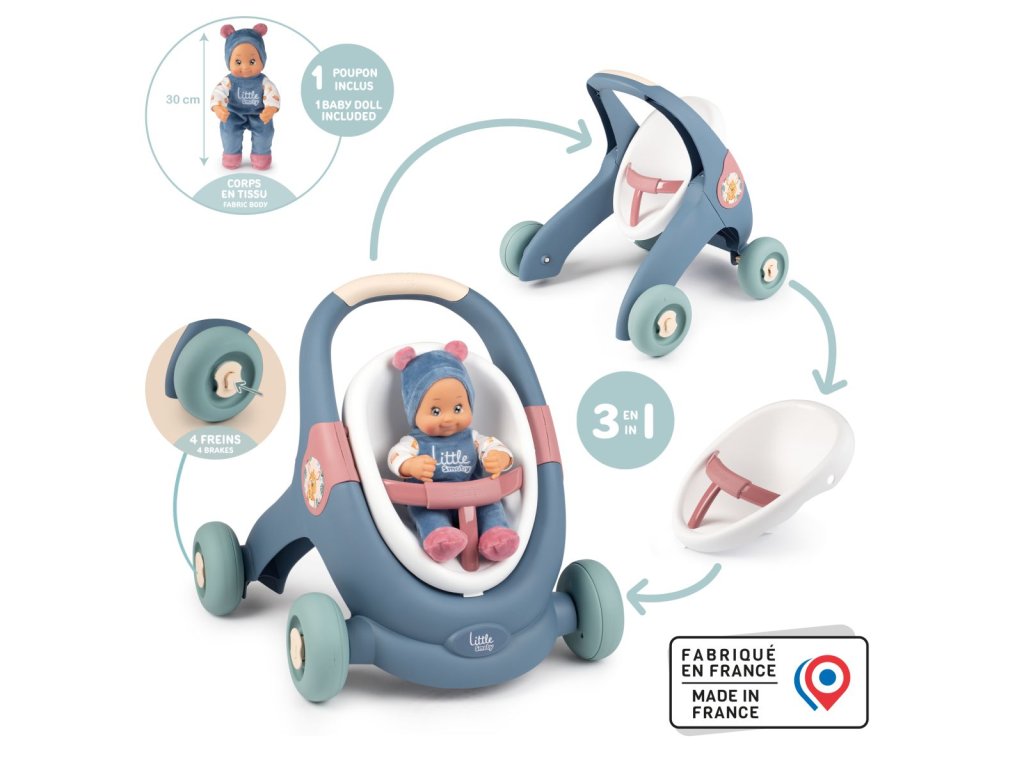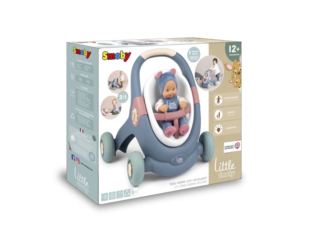 Dětské chodítko 3 v 1, použití jako chodítko, kočárek pro panenku a sedátko pro panenku. Součástí je panenka o velikosti 30 cm.Doplňkové parametry