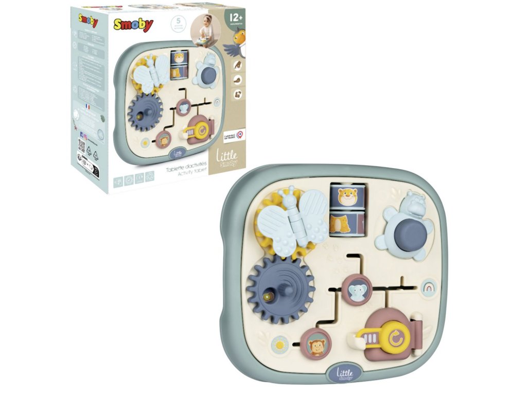 Motorická deska Little Smoby s 5 různými a originálními aktivitami: labyrint, dveře se zámkem, ozubená kola, válečky a tlačítko. Rukojeti na straně poskytují dítěti pevný úchop. Slouží k rozvíjení motorických schopností dítěte. Rozměry výrobku (DxŠxV): 23,4 x 25,1 x 6,7 cm.Doplňkové parametry