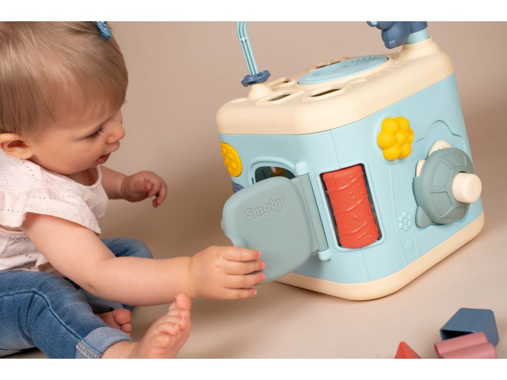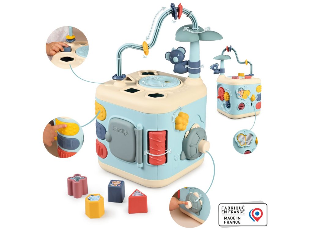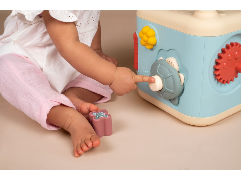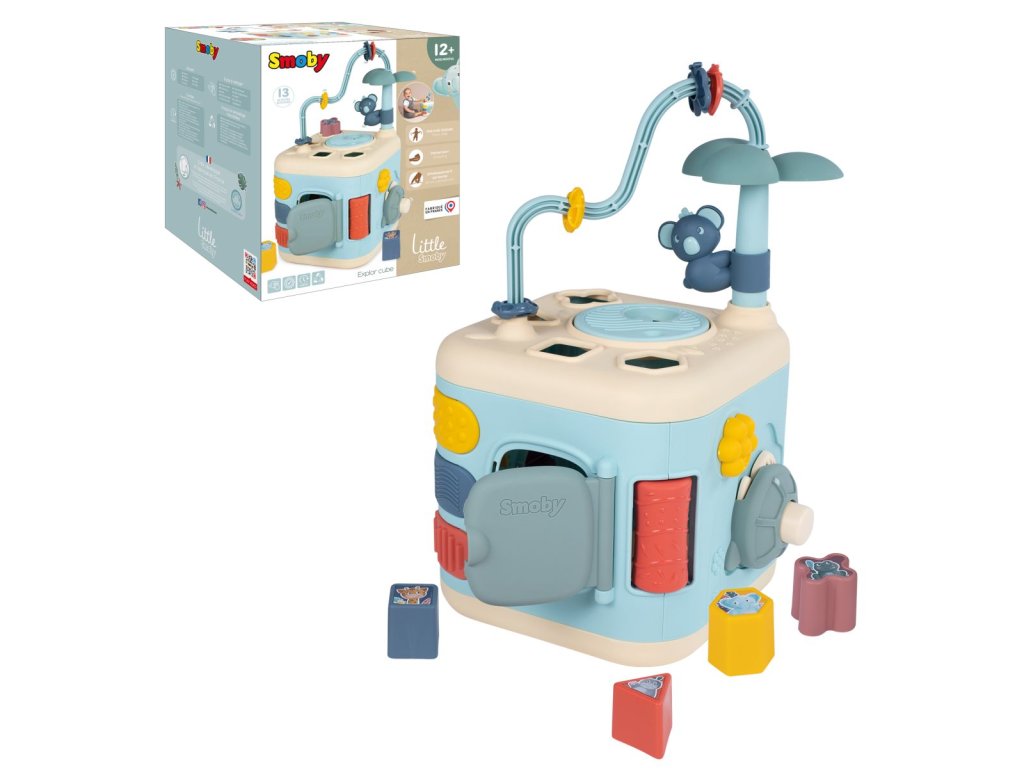 5-stranná aktivity kostka z řady Little Smoby pro podporu motorických dovedností. Nabízí množství aktivit pomocí zásuvných otvorů, smyček a ozubených kol, vše doplněno o prvky roztomilých zvířátek. Rozměry rozbaleného výrobku: 28,90 cm x 39,50 x 27,40cm.Doplňkové parametry