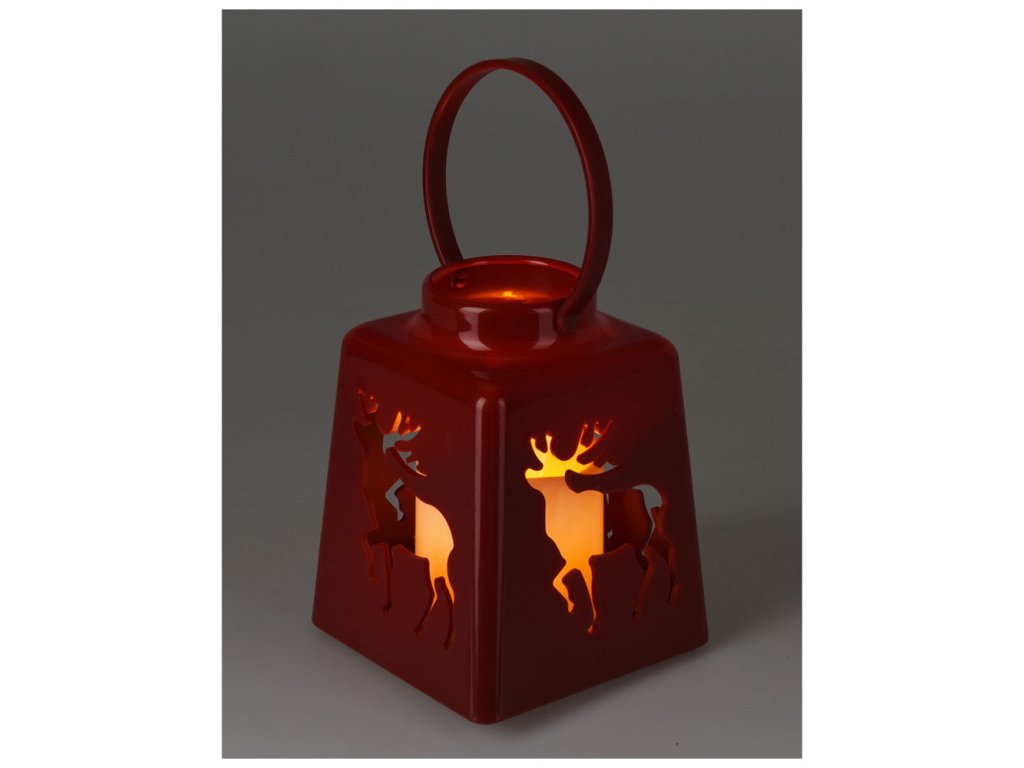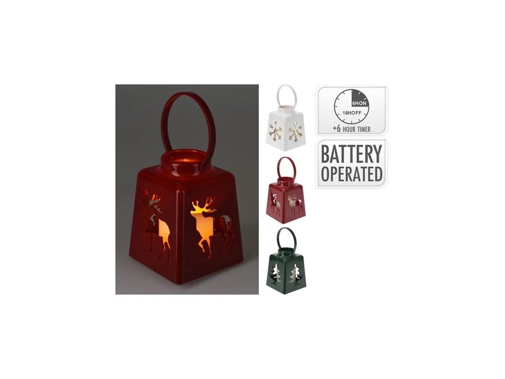 Vánoční lucerna s uchem a LED svíčkou červená, zelená nebo bílá.- rozměr: 105x105x135 mm