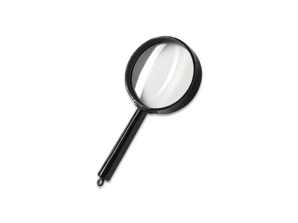 Lupa s plastovým rámečkem a skleněnou čočkou. Průměr 60 mm, výška 13 mm, délka 13 cm. 7x zvětšení. Očko pro zavěšení.Doplňkové parametry