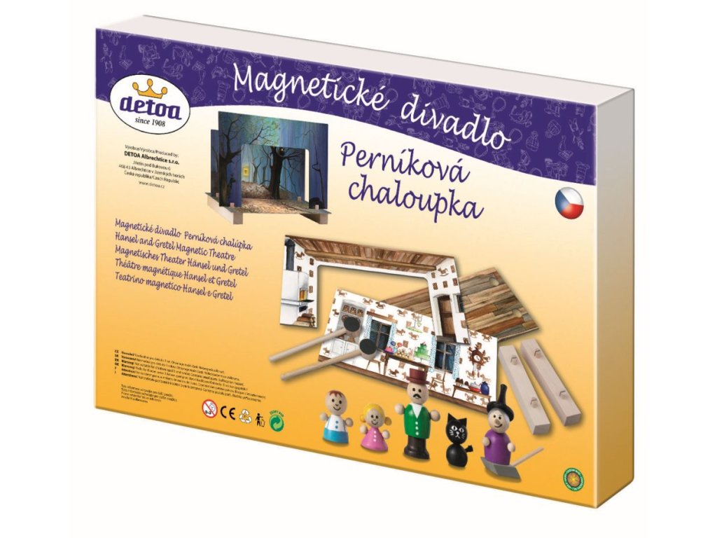 Magnetické divadlo Perníková chaloupka je výborná zábava pro malé i velké na motivy oblíbené pohádky. Ve figurkách je vlepený magnet, který se přitahuje k magnetu ve vodítku. Hra rozvíjí dětskou fantazii a kreativitu při vymýšlení vlastních pohádkových příběhů.Doplňkové parametry