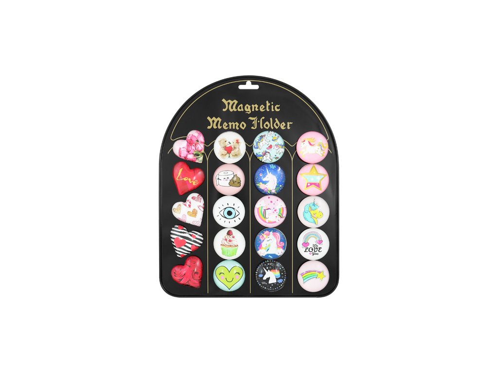 Magnetka má vypuklý šošovkovitý tvar tvorený priehľadnou hmotou. Cena je za 1 ks. Na magnetickej tabuli sa nachádza 20 ks magnetiek. Tabuľu je možné zavesiť alebo postaviť pomocou rozkladacieho stojanu. Pri kúpe 20 ks je tabuľa k magnetkám grátis. Rozmer tabule je 27,5x22,5 cm.Doplňkové parametry