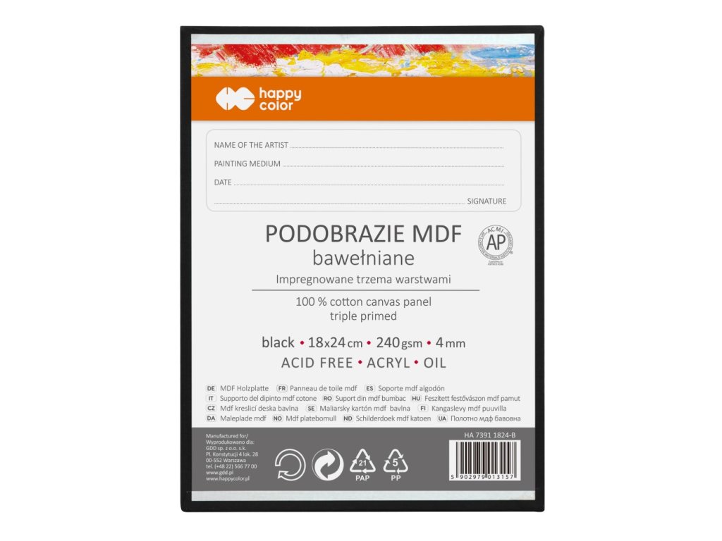 Malířské plátno Happy Color 18x24 cm MDF 4 mm - černé