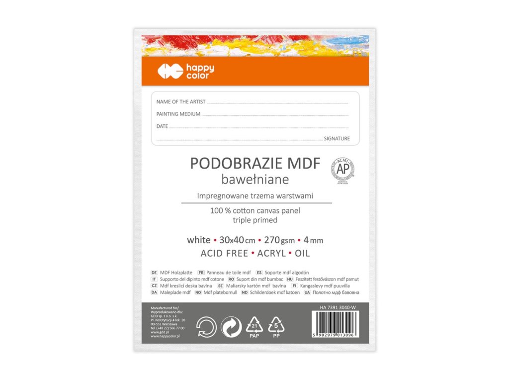 Malířské plátno Happy Color 30x40 cm MDF 4 mm - bílé