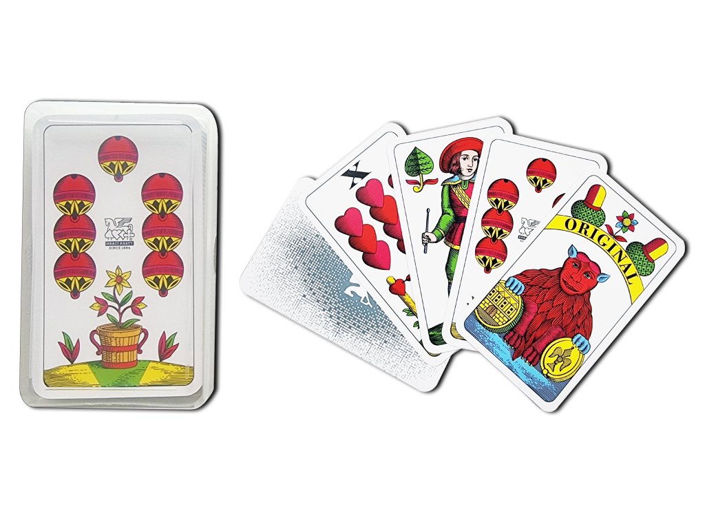 …naše hra vychází z tradičního karetního vzoru ve světě známého jako „pražský typ“. Tváří této hry je již 200 let žaludské eso s medvědem držícím dvě mince. Revers hry s bájným Pegasem je pro tuto hru charakteristický již více jak 50 let. No.1512, revers koník, krabička plast počet 32 listů formát karet 62/104 mm papír Casino Classic 310 g/m2Doplňkové parametry
