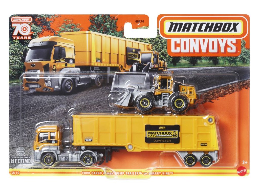 Matchbox™ přináší neuvěřitelné a reálné dopravní prostředky, které umocňují poznávání a objevování bez hranic. V každém balení je souprava s odnímatelnou kabinou ve velikosti cca 17 cm a úžasné vozidlo Matchbox™ v měřítku 1:64 s realistickými motivy. Děti poznají soupravy a vozidla z každodenního života a využijí to k rozvoji technik vyprávění příběhů z reálného světa. Sběratelé ocení detaily a provedení, které ke značce Matchbox™ neodmyslitelně patří. Každý se prodává samostatně v závislosti na dostupnosti. Barvy a provedení se mohou lišit.Doplňkové parametry