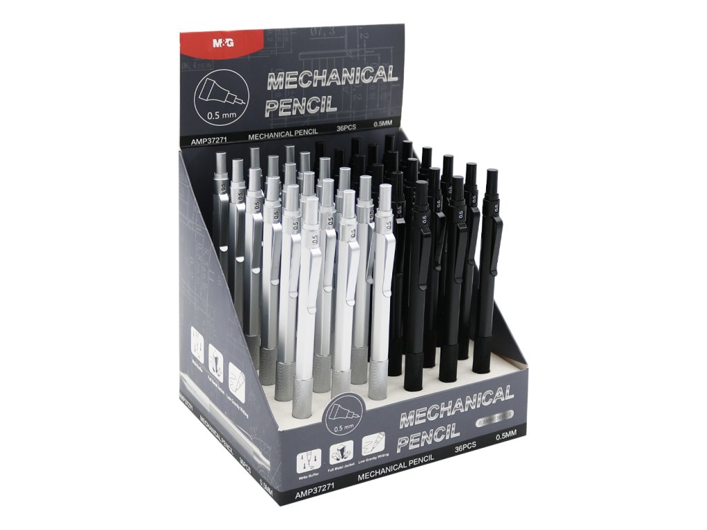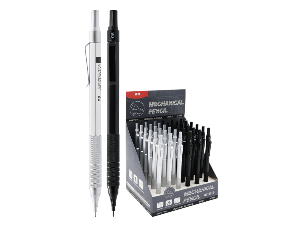 Mechanická tužka s celokovovým tělem a vroubkovaným úchopem proti klouzání při psaní. Barva těla: černá nebo stříbrnáDoplňkové parametry