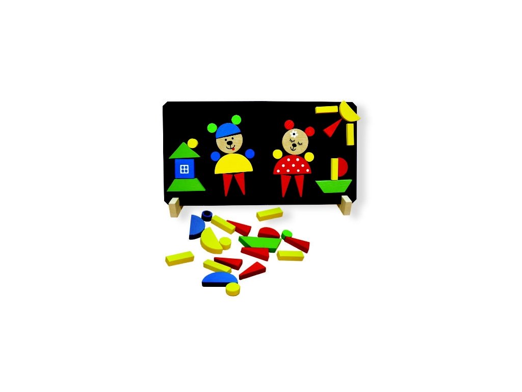 Puzzle medvědi obsahují magnetickou tabulku, stojánek a 37 dřevěných dílků s magnetem, z nichž lze sestavit různé obrázky. Pomáhá rozvíjet jemnou motoriku a představivost dětí. Baleno v krabici z tvrdého papíru. Nevhodné pro děti do 3 let. Obsahuje malé částiDoplňkové parametry