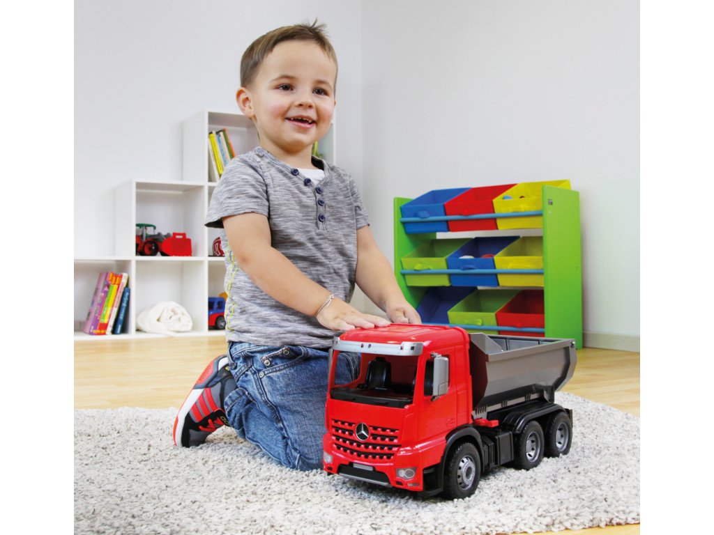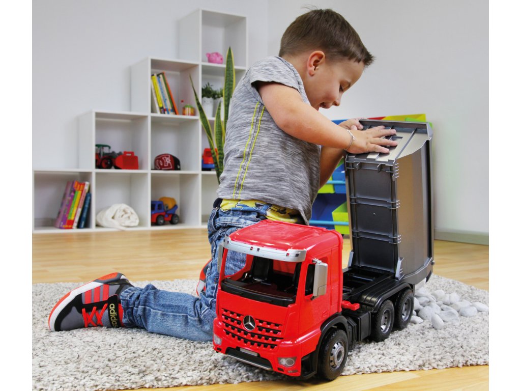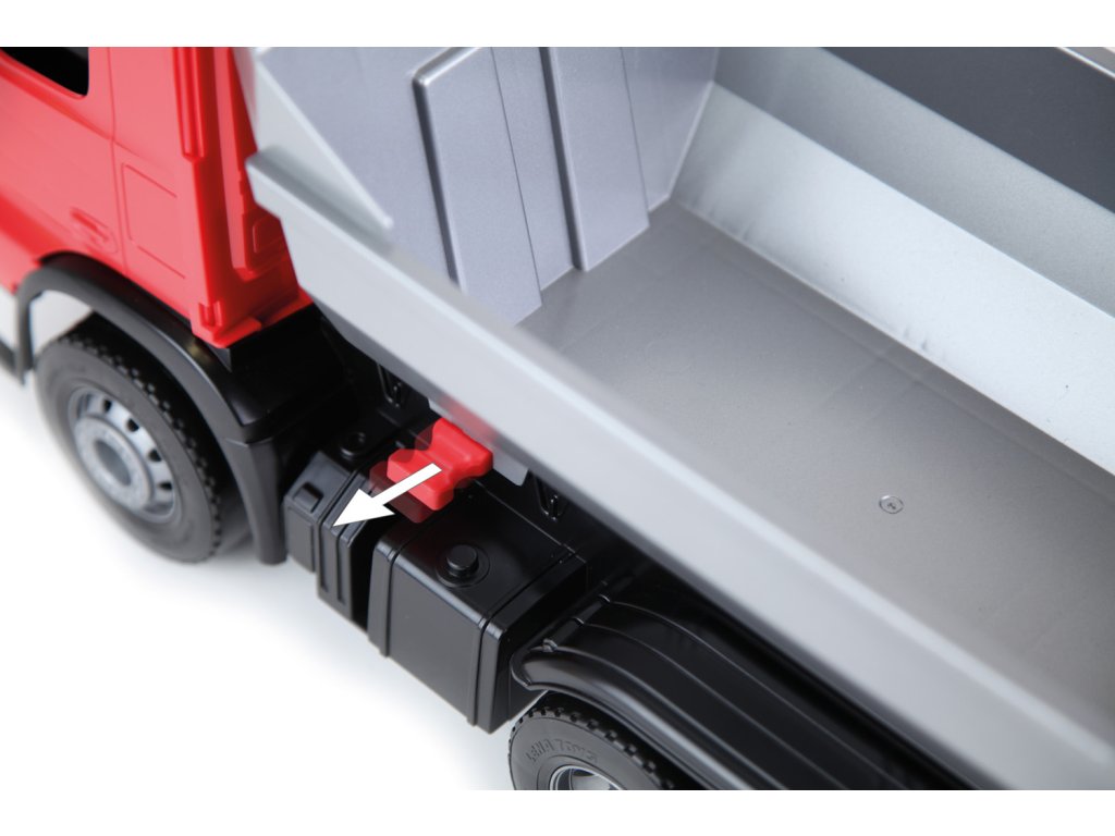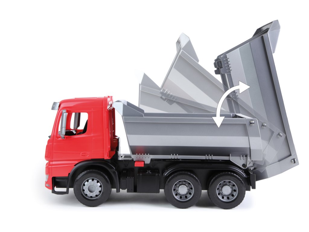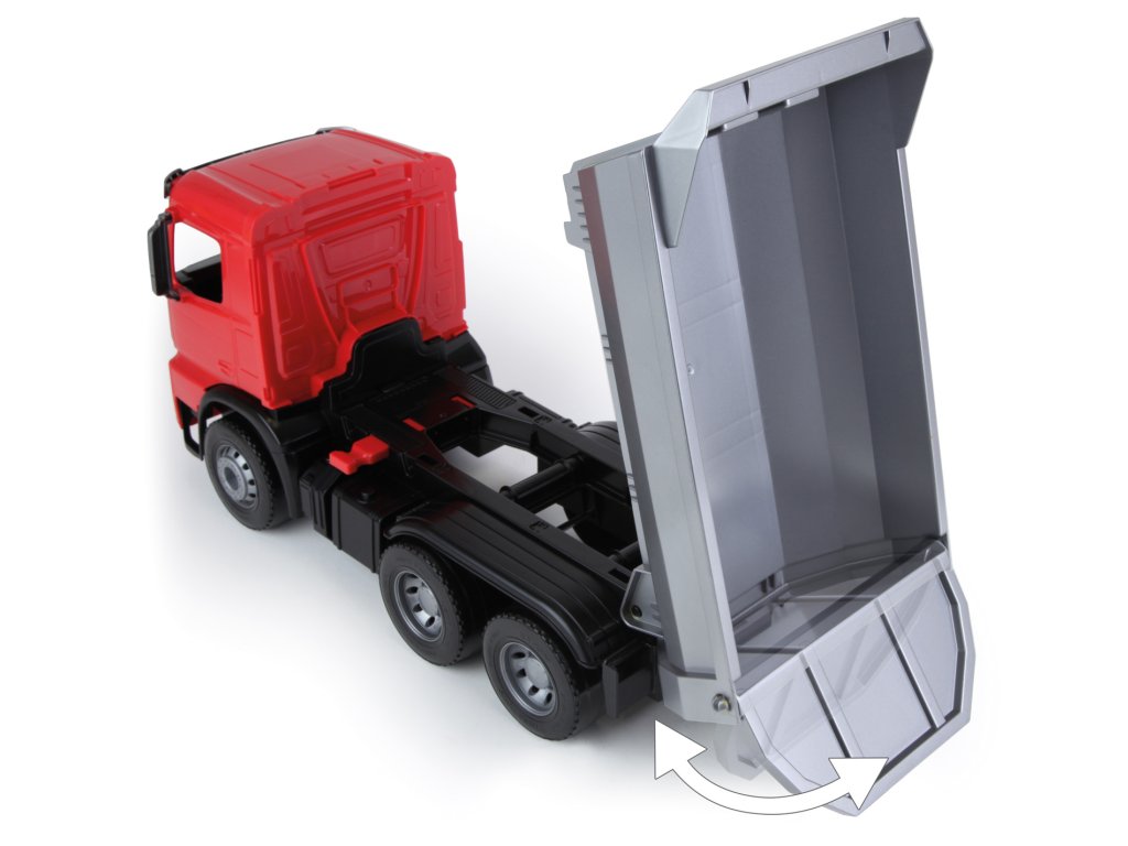 Mercedes Arocs sklápěč. 6mm tlusté kovové osky u kol. Součástí je pojistka proti nežádoucímu vyklopení korby.Doplňkové parametry