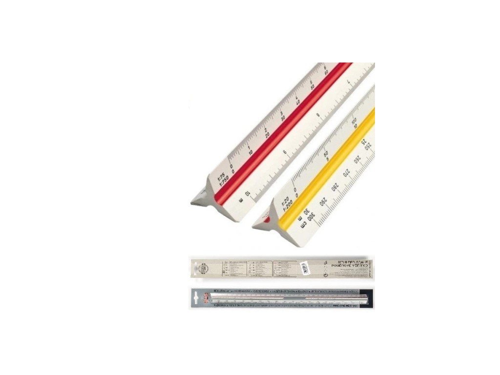 Poměrné měřidlo trojstranné (geodetické měřítko), balené v papírovém obalu s eurozávěsem; dodávané jednotlivě nebo v balení po 10 ks.Doplňkové parametry