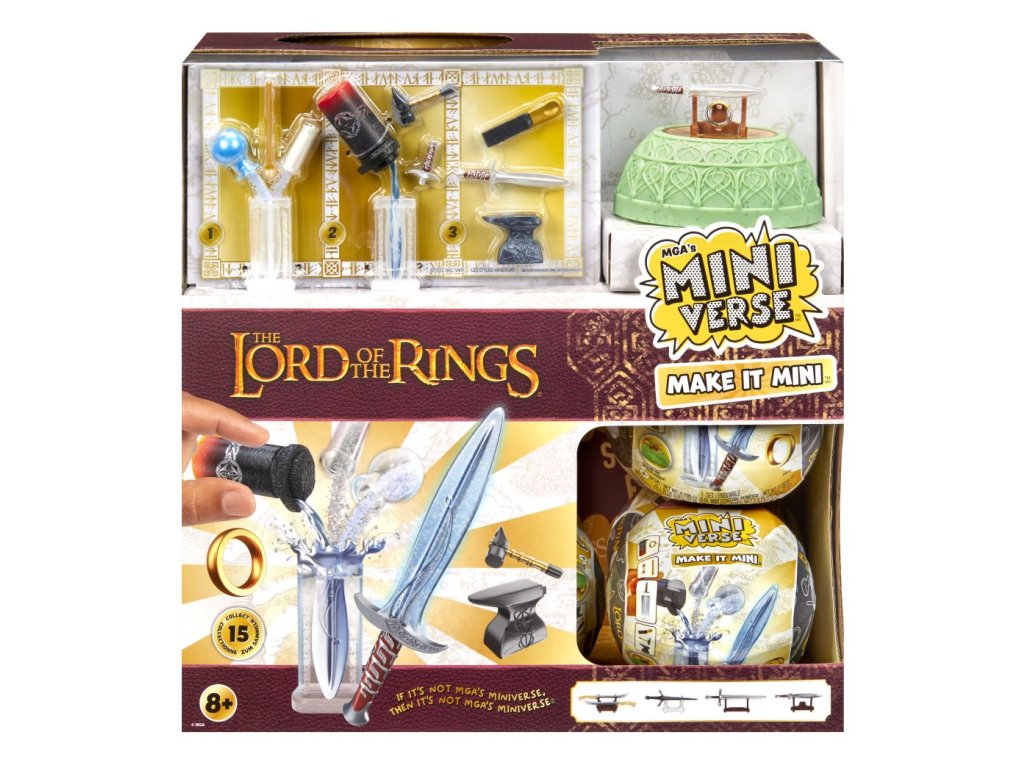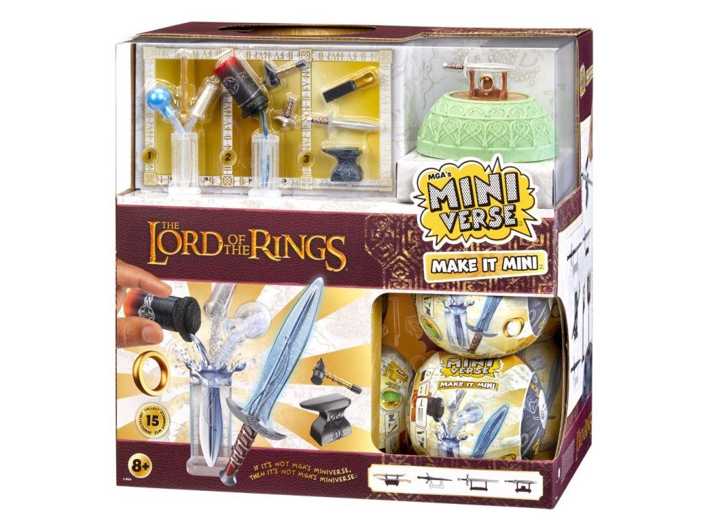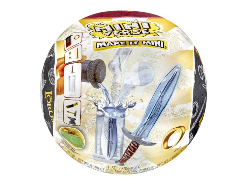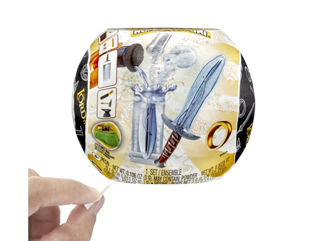 Mini hračky...VELKÁ překvapení! Udělej to! Vystav to! MGA‘s Miniverse se spojilo s Warner Brothers a společně přináší zbraně a předměty z Pána prstenů ve formě mini replik. Miniaturní, ale i přesto s neuvěřitelně realistickými detaily! Vyrobíš je z ingrediencí ve tvém balíčku, pak vše necháš alespoň 5 minut na přímém slunci vytvrdnout nebo na ně zasvítíš UV lampičkou a můžeš vystavovat! V sérii najdeš 15 mini replik, z nichž 3 jsou vzácné. Obsah balení: • 1 lahvička s pryskyřicí • 1 obal ve tvaru koule • Ingredience a nástroje pro výrobu 1 setuDoplňkové parametry