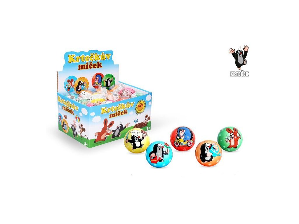 Míček krtek. Velikost 5 cm. 24 ks display box. 6 variant Motiv zasíláme dle skladových zásob Uvedená cena je za 1 ksDoplňkové parametry
