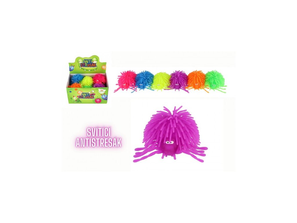 Míček pavouk antistresový, mačkací silikon, 10cm na baterie se světlem - 6 barev