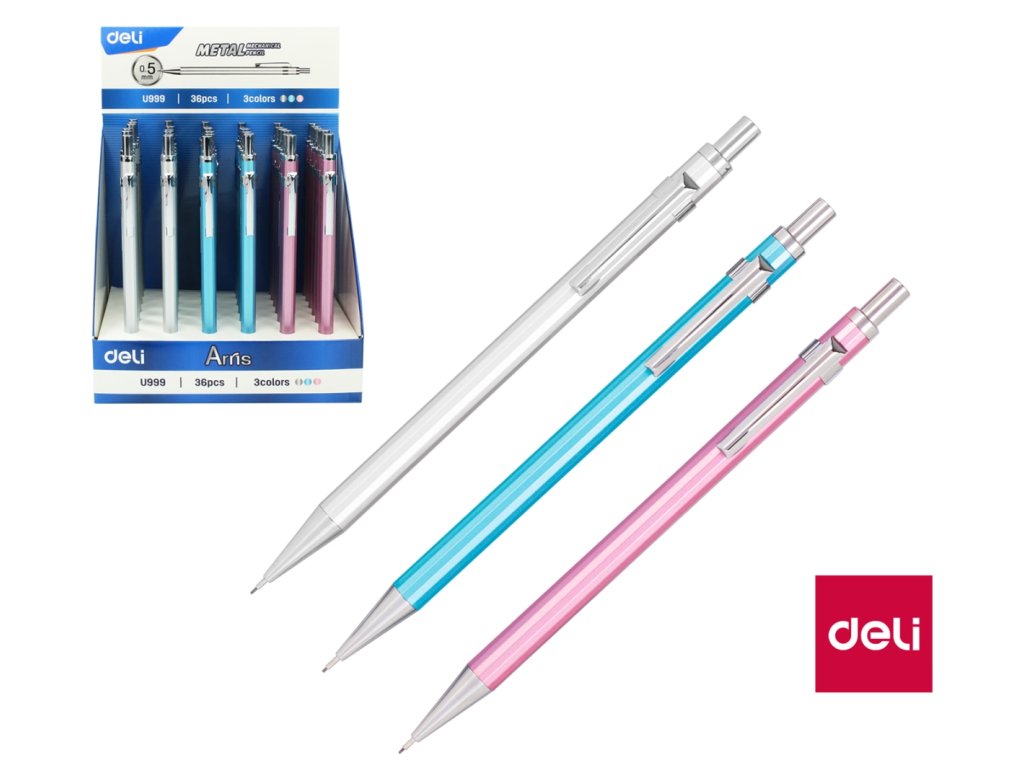 Mikrotužka kov DELI: - kulaté kovové tělo- stiskací mechanismus- výsuvný hrot- obsahuje mazací gumu- tvrdost tuhy: 2B- tuha: 0,5mm CENA ZA 1KS - DO POZNÁMKY NAPIŠTE POŽADOVANOU BARVUDoplňkové parametry