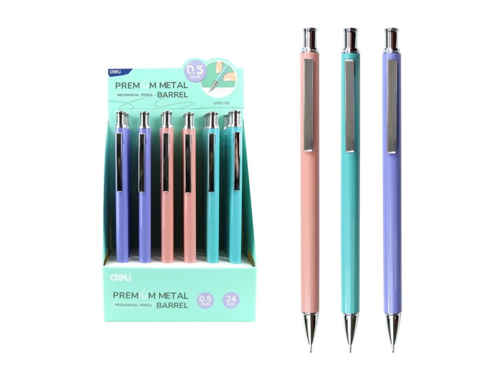 Mikrotužka kov DELI: - kulaté kovové tělo- stiskací mechanismus- výsuvný hrot- tuha: 0,5mm DO POZNÁMKY V OBJEDNÁVCE NAPIŠE POŽADOVANOU BARVU.Doplňkové parametry