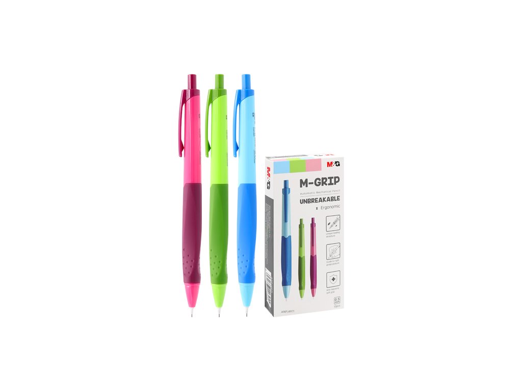 Mechanická tužka s ergonomickým úchopem ve třech jasných barvách.