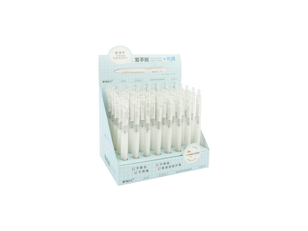 Mechanická tužka s tuhou o průměru 0.5 mm s transparentním plastovým tělem a ergonomickým, gumovým úchopem pro pohodlné psaní.Doplňkové parametry