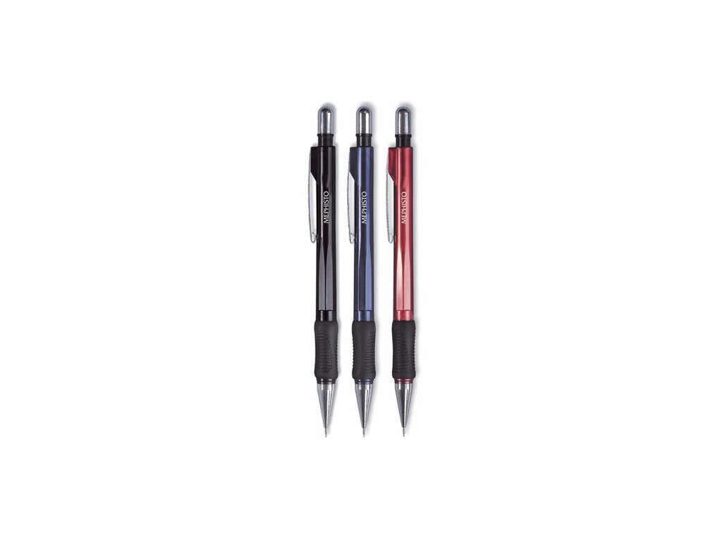 Mechanická tužka s tuhou tvrdosti HB o průměru 0,3mm, určená pro běžné psaní. Vyhotovená v kombinaci kov-plast, barvy pláště: červená, černá, modrá + gumový úchyt, délka tužky 150 mm, průměr tužky 10mm.Doplňkové parametry