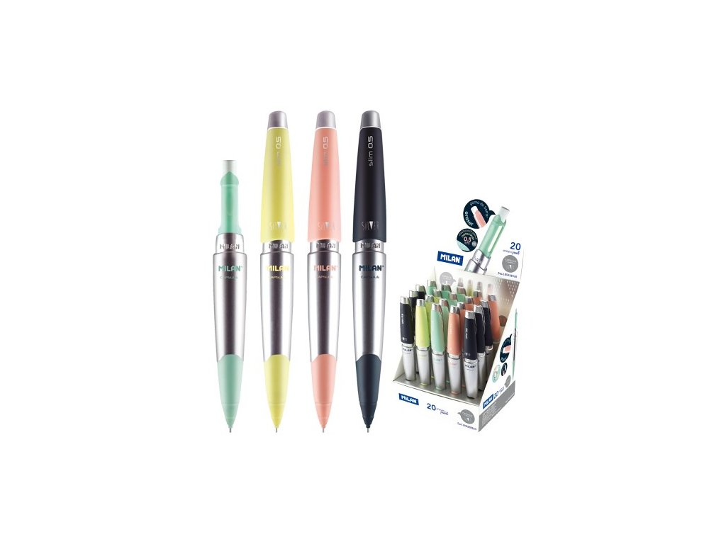 Mechanická tužka s pogumovaným povrchem a ergo designem padne do každé ruky. Průměr tuhy 0,5 mm / HB. Atraktivní design Capsule Silver. Součástí je i guma, která je umístěná ve vrchní časti. K dispozíci v 4 odstínech. Kolekce MILAN SilverPrůměr hrotu 0,7mmTvrdost tuhy 2BVýrobce MILANbal / ks 20kart. / bal 360Rozměry 130 mmDoplňkové parametry