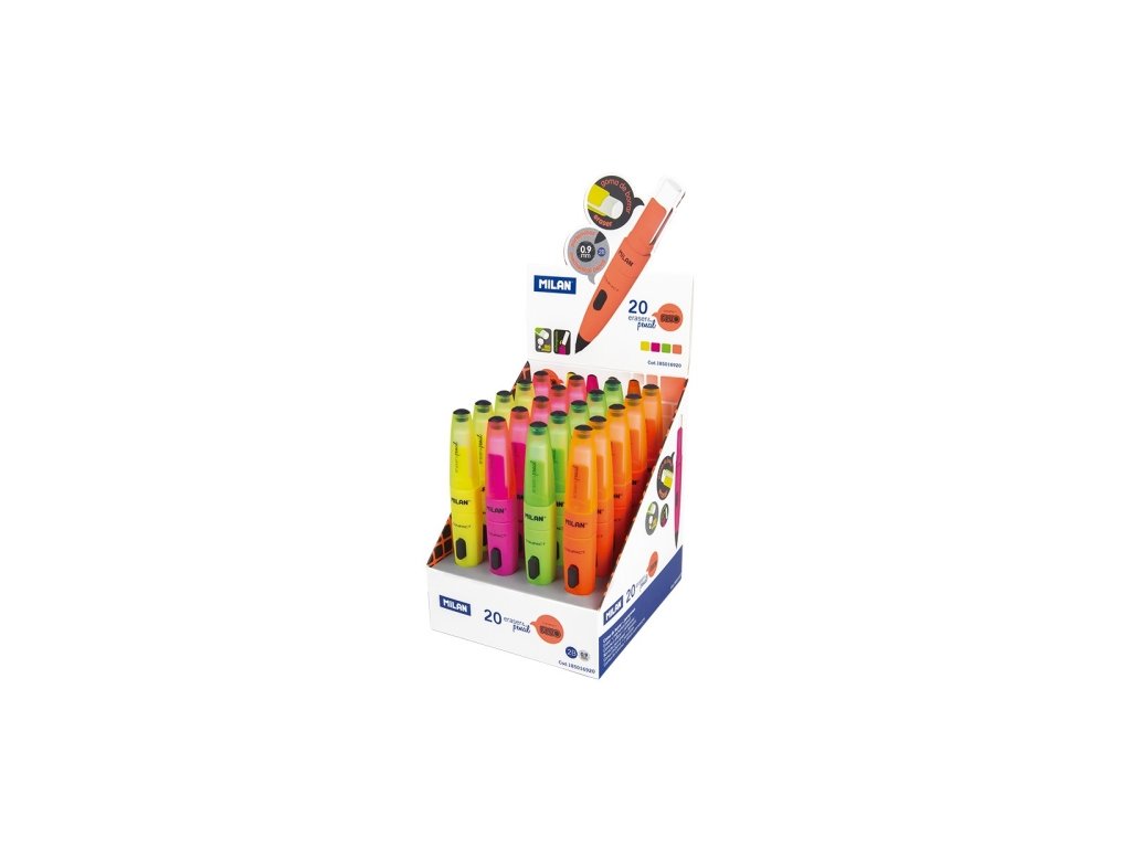 Mechanická tužka - pentelka 2B, šířka tuhy 0,9 mm. Součástí pentelky je i guma, která je umístěna ve vrchní části. K dispozici ve 4 barvách Fluo: žlutá, oranžová, růžová, zelená.Doplňkové parametry
