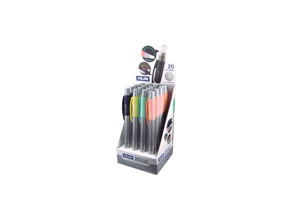 Mikrotužka - pentelka, 0,5 HB. Součástí tužky je i guma, která je umístěna ve vrchní části, vysouvá se otáčecím mechanismem. Stříbrné tělo s doplňky v 4 barevných provedeních.Doplňkové parametry