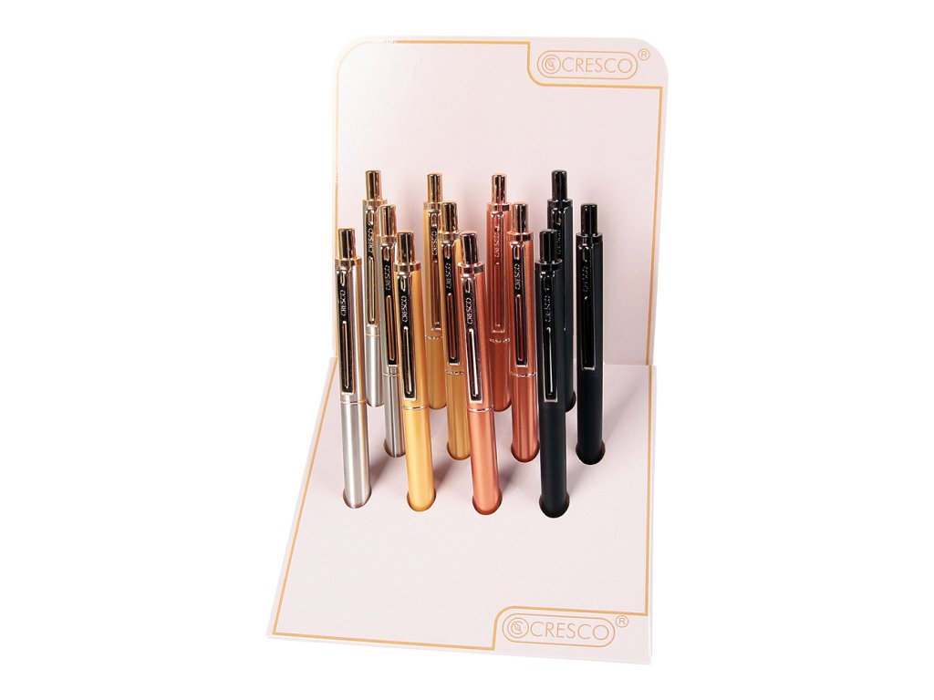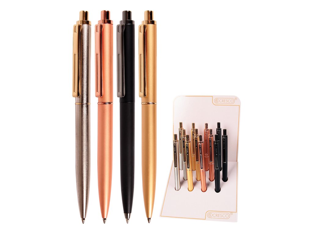 Mechanická tužka s plastovým tělem a kovovými doplňky ve 4 barvách. - luxusní kovový vzhled Barvy: černá, zlatá, stříbrná a měděnáDoplňkové parametry