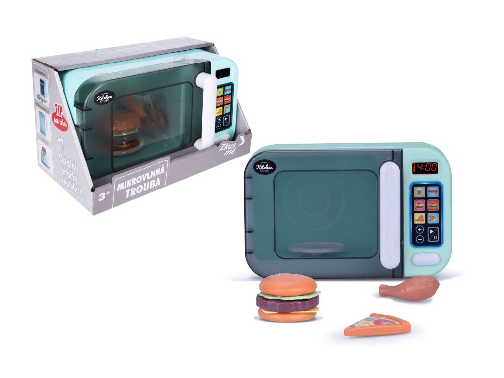 Nechce se ti vařit teplá večeře? Nevadí! Kup si nějakou hotovku a doma ohřej v mikrovlnce! Zmáčkni na displaji příslušný program podle typu jídla a za chvilku můžeš jíst! Délku ohřívání si můžeš upravit pomocí tlačítek +/- Talířek se v mikrovlnce otáčí Provoz je doprovázen světelnými a zvukovými efekty Mikrovlnku si nově zakoupíš v českém obale Rozměry: 26 x 14 x 17 cm Doporučený věk: od 3 let Baterie 3xAA součástí baleníDoplňkové parametry