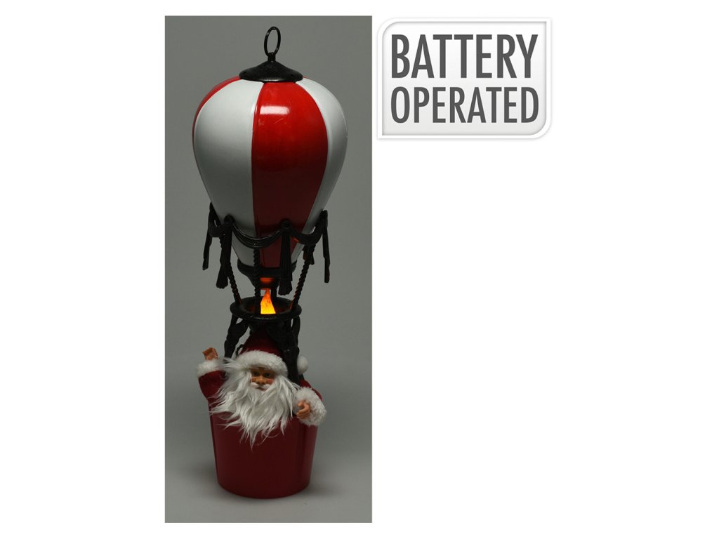 Vánoční figurka Mikuláše letícího v balonu s LED plamenem, možnost zavěšení.- rozměr: 14x14x40 cm