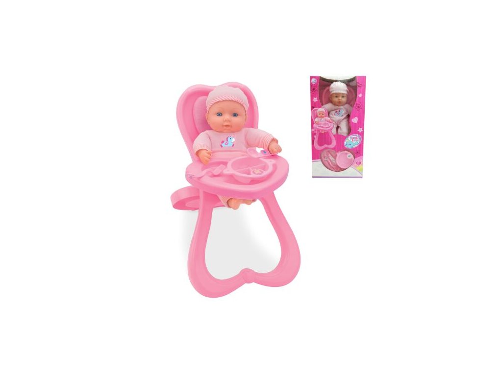 Postaráš se o hladové miminko? Posaď ho do jídelní židličky a připrav mu papání. Podívej, jak mu chutná! Obsah balení: miminko židlička miska lžíce a vidlička. Velikost miminka: 31 cm. Doporučený věk: od 2 let.Doplňkové parametry