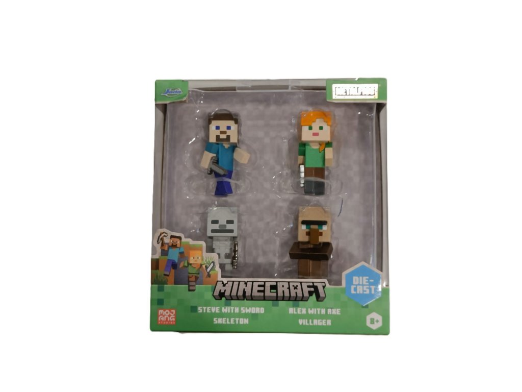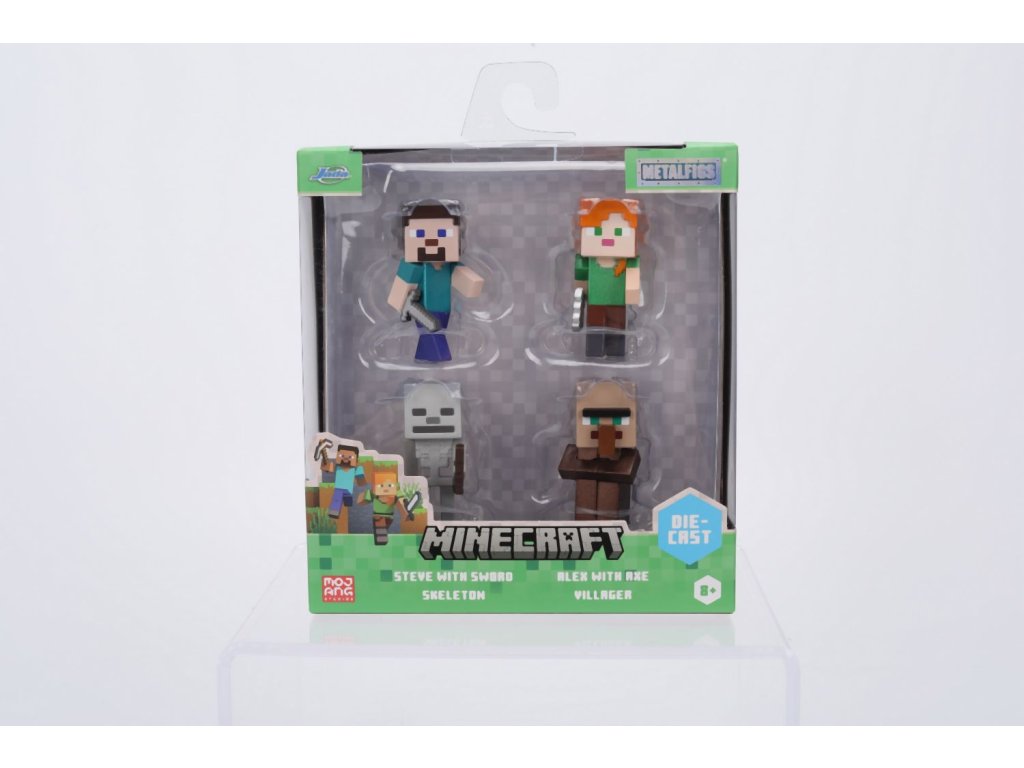 Sada kovových sběratelských figurek Minecraft, výška 6 cm. Steve s mečem, Alex se sekerou, Skeleton, Villager.Doplňkové parametry